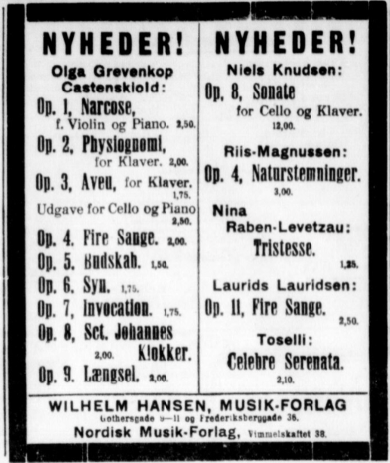 Noderne til Olga Grevenkop Castenskiolds værker kan downloades her: