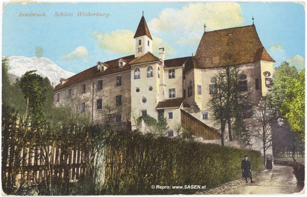 En af hans rejser til Tyrol er ret nøje beskrevet, for Lange-Müller var i selskab med sin ven, forfatteren Einar Christiansen, der både sendte breve hjem til sin gamle mor i København og senere omtalte rejsen i sin erindringsbog. Deres fælles rejse begyndte 1. april 1890 med tog fra København til Innsbruck, hvor planen var at fortsætte til Lange-Müllers yndlingsby Meran (der i dag hedder Merano). Men på en dagstur fra Innsbruck til den pittoreske borg Weyerburg (i dag stavet Weiherburg) opdagede de to danskere, at det var muligt at leje sig ind hos slottets forgældede ejere. Lange-Müller og Christiansen endte med at blive boende i flere måneder som de eneste gæster på det forfaldne middelalderslot.